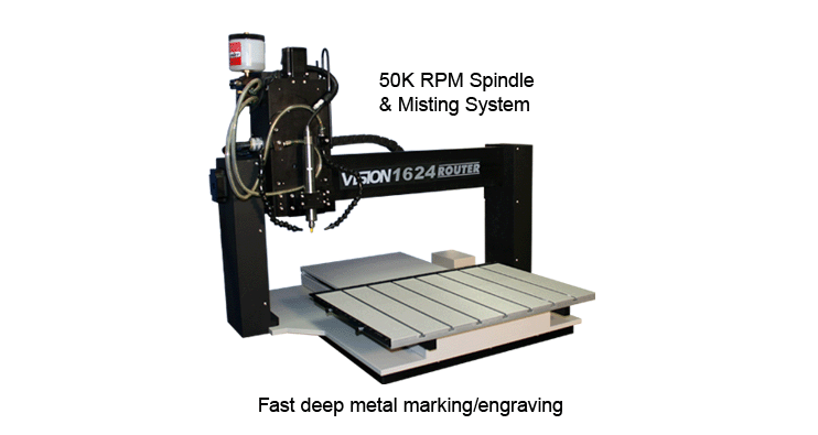 HIGH-FREQUENCY 50,000 RPM ENGRAVING SPINDLE  This high-frequency spindle is perfect for deep engraving into metals! The high RPM allows cutters to stay sharp much longer for increased production, and allows for much faster speed in engraving. Includes control box; no nose cone. Available as an option for our 16 Series and 24 Series Engravers, as well as our 25 Series Routers (with engraving head option).  |