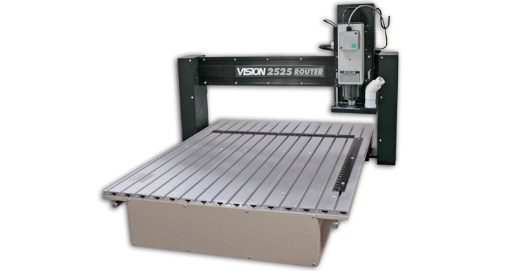The 2525 CNC Router/ Engraver  is Vision's heavy-duty 25" x 25" routing system. It can produce accurate, repeatable, cost-effective work in considerably less time than it takes to do the same work by hand. Featuring our state-of-the-art Vision Series 5 Controller with V-Touch Pendant and our graphically advanced Vision software, this machine is perfect for a wide variety of applications including milling, drilling, contouring, and routing.